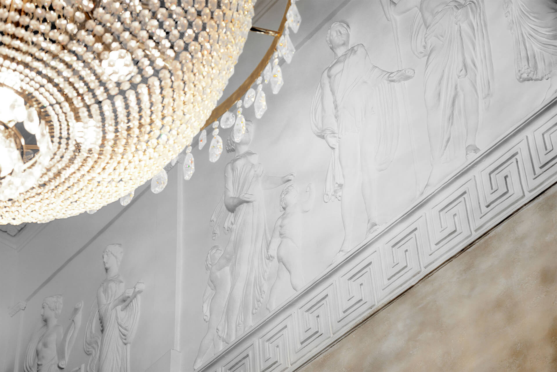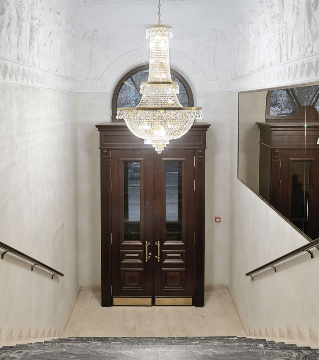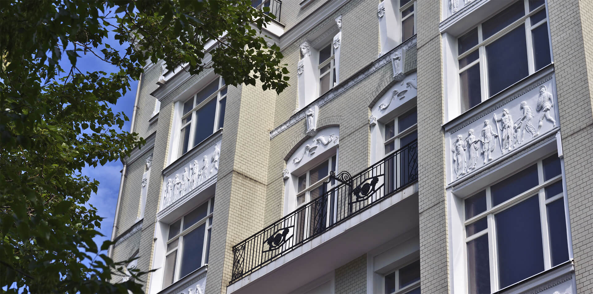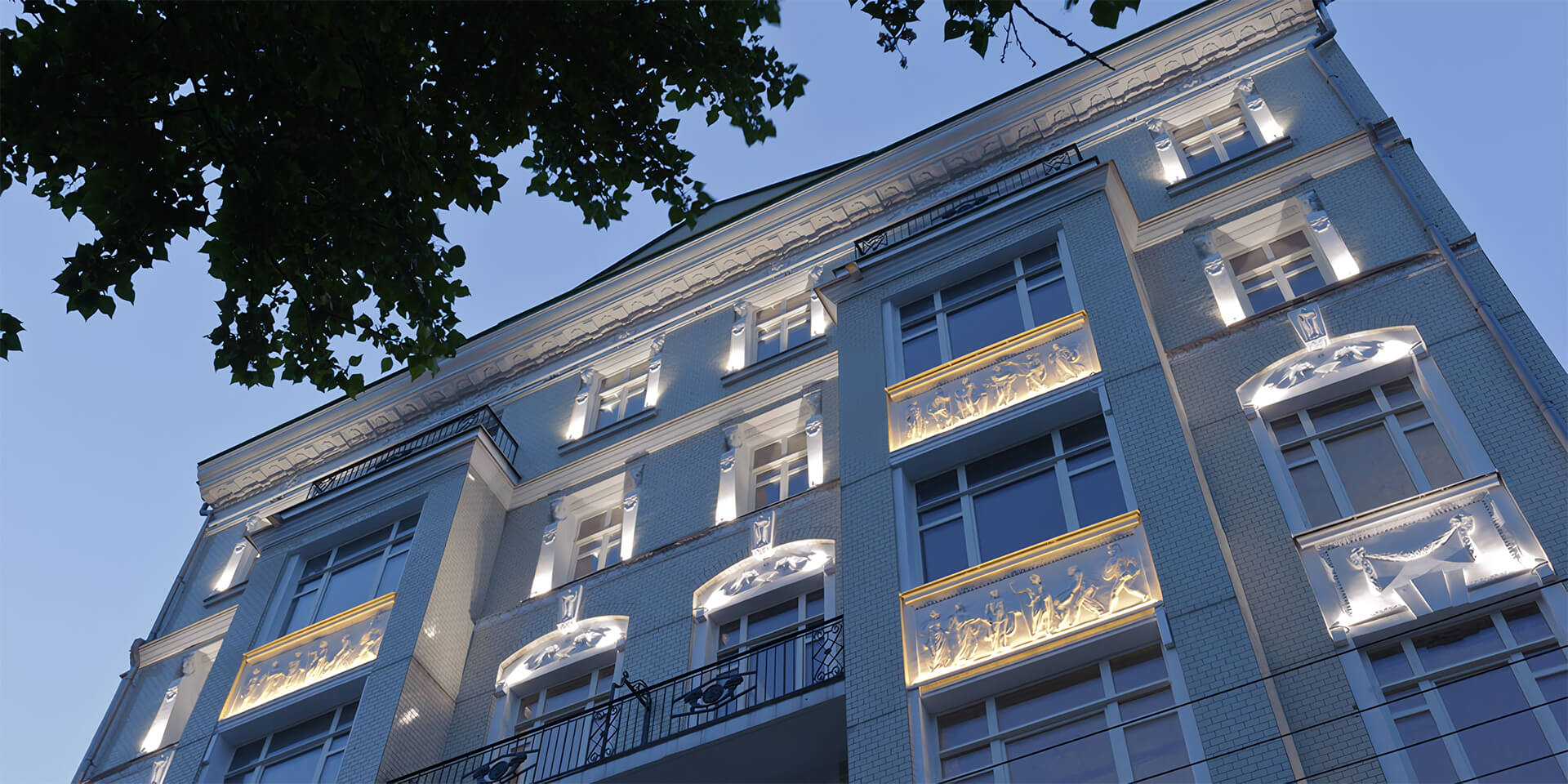 Реставрация дома была проведена ведущими специалистами в области сохранения исторического наследия и позволила не только восстановить оригинальные декоративные элементы, но и адаптировать здание к требованиям современной элитной недвижимости. Внешний облик дома гармонично вписывается в окружающий архитектурный ансамбль, подчеркивая его статус и уникальность.