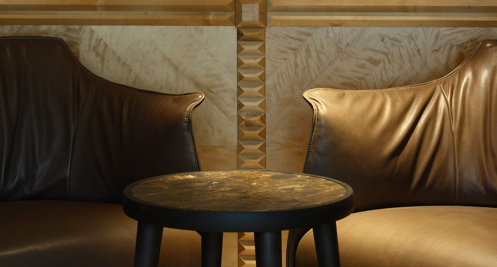 Интерьеры общественных зон разработаны ведущим международным архитектурным бюро и демонстрируют изысканный стиль с использованием дорогих натуральных материалов. Лобби встречает жителей благородными оттенками мрамора, ценных пород дерева и элементов художественного декора, создавая атмосферу роскоши и уюта. Пространства выдержаны в элегантной цветовой гамме, а продуманное освещение и высокие потолки делают помещения визуально просторными и наполненными светом.